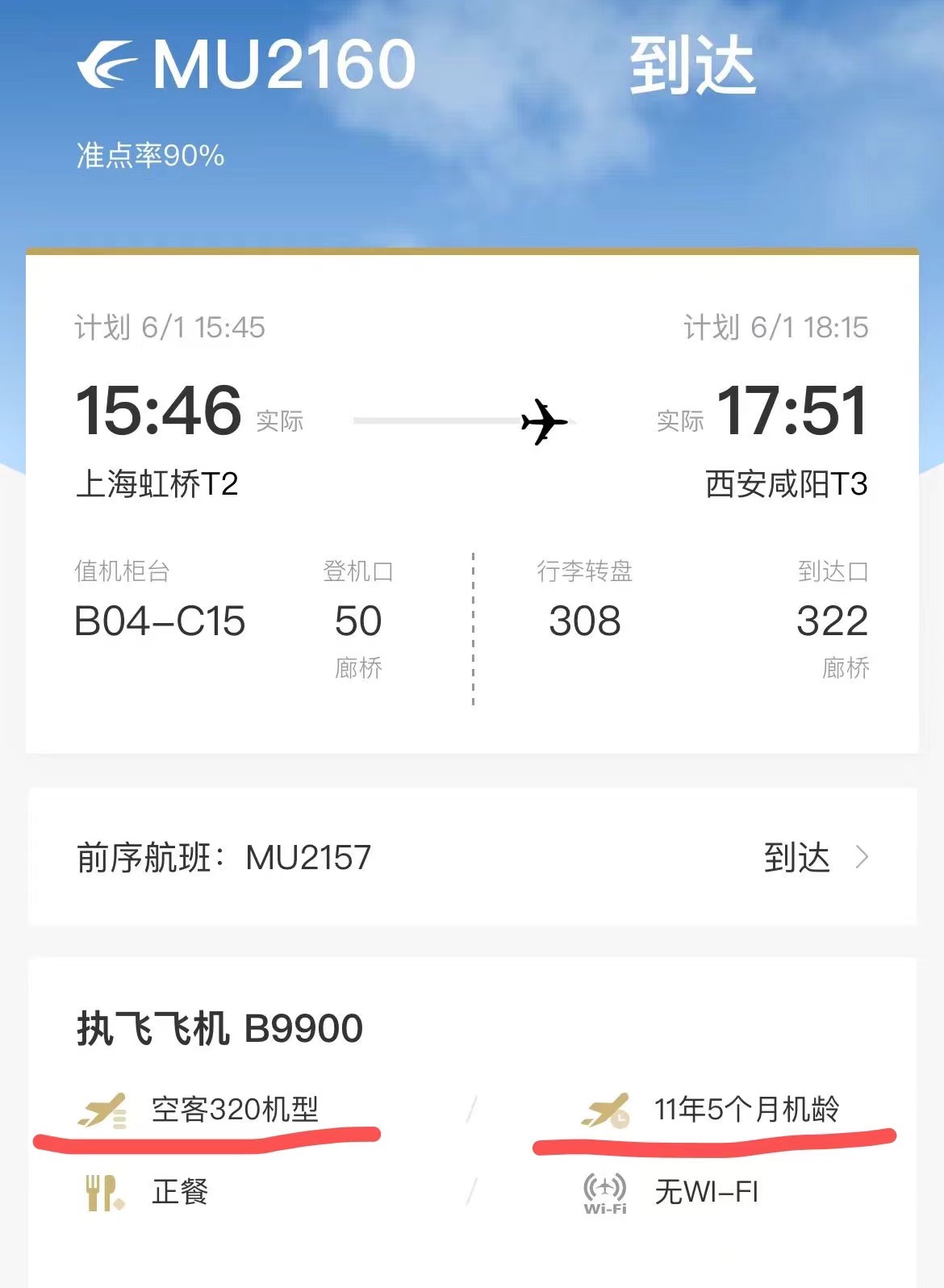 实际执飞飞机为机龄11年5个月的A320
