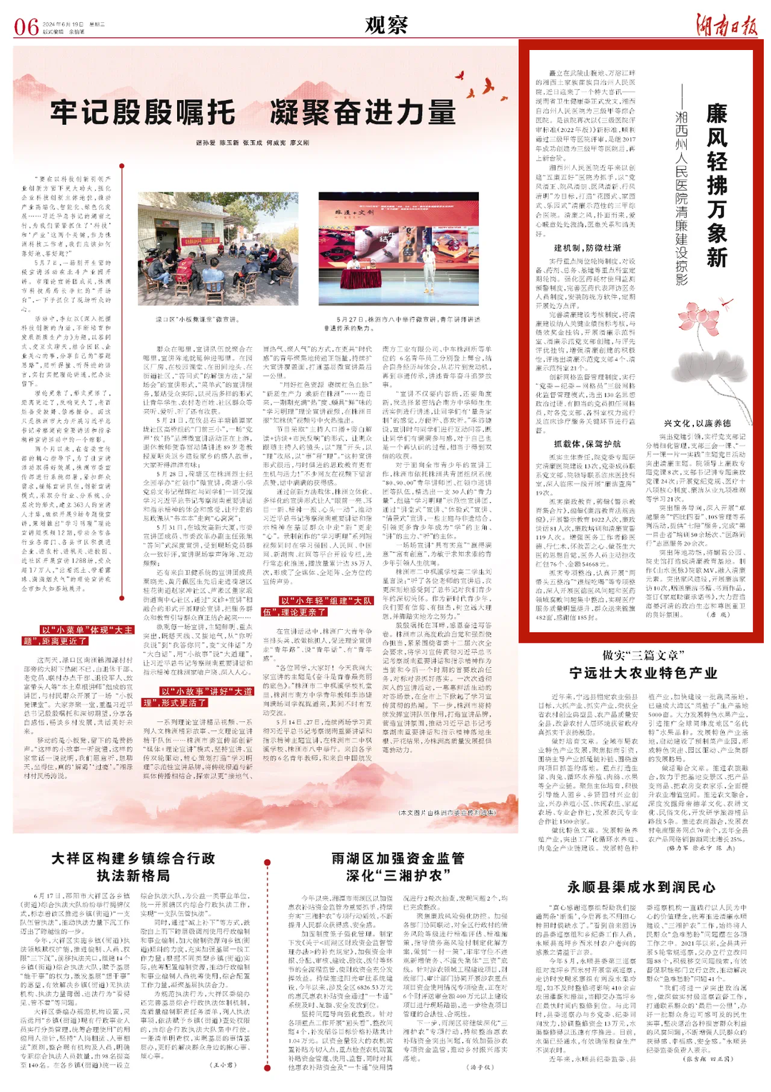 湘西州人民医院近年来以创建“五廉五好”医院为抓手,以“党风清正、院风清朗、医风清新、行风清明”为目标,打造“花园式、家园式、乐园式”清廉示范性的三甲综合医院。清廉之风,扑面而来,爱心暖意处处流淌,医患关系和谐美好。