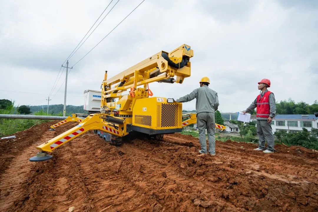 接到任务后,“星城带电护卫”喻晖带着技术骨干赶赴现场查勘,只见到,公路与施工作业点之间被水塘、树木、农田隔开,受雨水冲刷,杆塔附近变得泥泞不堪,传统带电作业吊臂车根本没法抵达,常规带电作业方法无法正常实施。