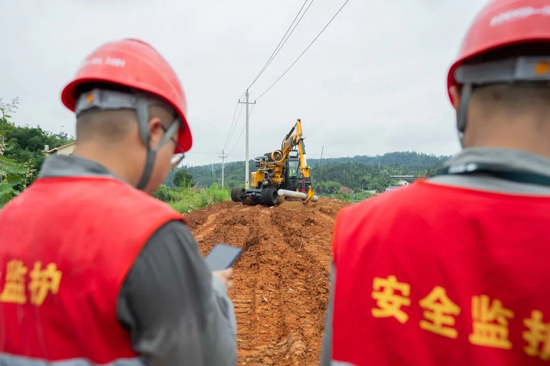 “星城带电护卫”现场施工负责人喻晖介绍,配网机械化施工一体机适用于丘陵、稻田、平原等复杂环境作业,具有开挖、钻孔、运杆、立杆、夯土等多种作业功能,各功能属具实现1分钟切换,采用遥控器远程控制,因其自动化和智能化,可有效降低作业人员安全风险,过程机械化施工,真正做到“减人增效”。