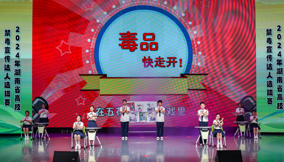 6月18日,“越青春 越勇敢”2024年湖南省高校禁毒宣传达人选拔赛活动决赛在长沙学院举行。全省12组晋级决赛的代表队齐聚一堂,通过“创意+”的模式,以音乐歌舞、脱口秀演说、剧情演绎等形式进行现场竞演,展开激烈角逐。