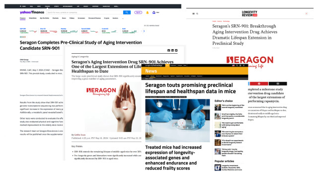近期,赛诺根发布公告:其管线中的第二款衰老干预候选药SRN-901初步完成临床前动物实验。