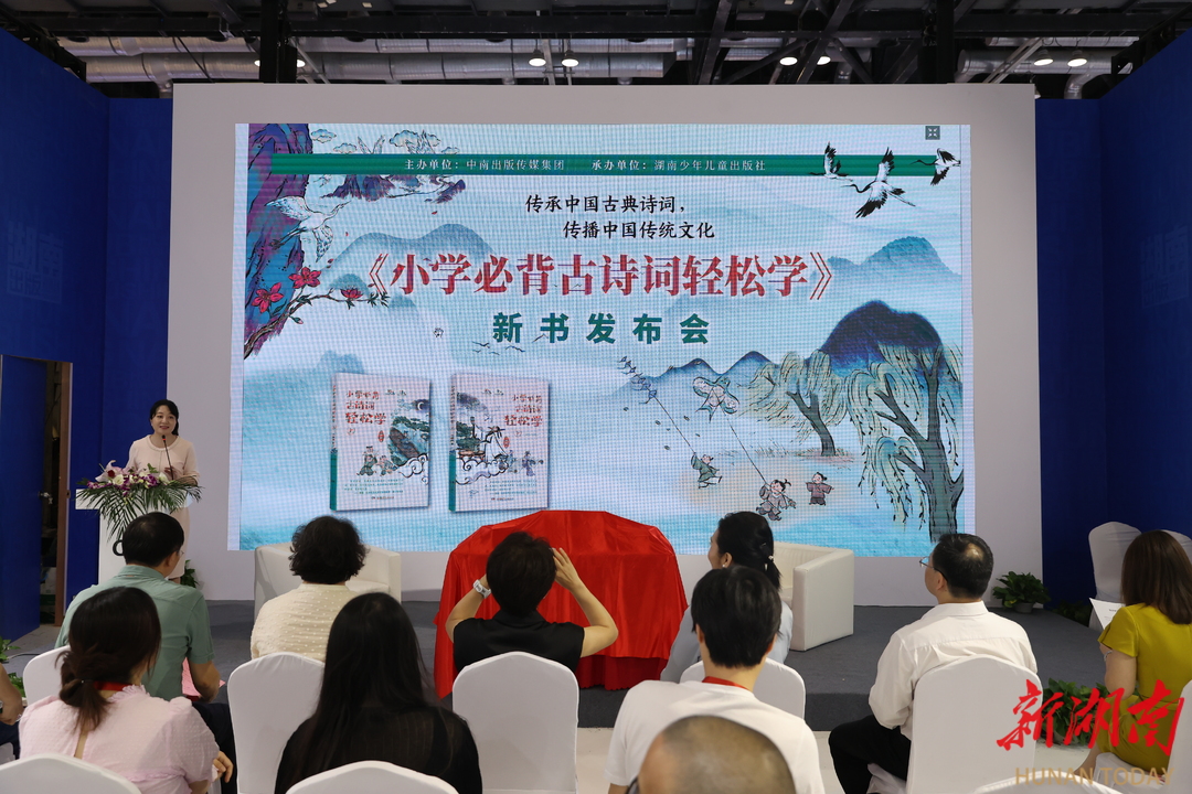 湖南日报·新湖南客户端6月21日讯 (记者 黄煌 摄影 赵持)古诗词作为中国传统文化中的重要组成部分,蕴含了古代伟大诗人的心灵、智慧、品格、襟抱和修养。6月21日上午,湖南少年儿童出版社推出的《小学必背古诗词轻松学》在北京图博会亮相。该作品旨在将中国古典诗词的瑰宝呈现给孩子们,增强少年儿童的民族文化自信,让中华古诗词的韵味跨越国界,推动其国际传播,为世界文化多样性的繁荣贡献力量。