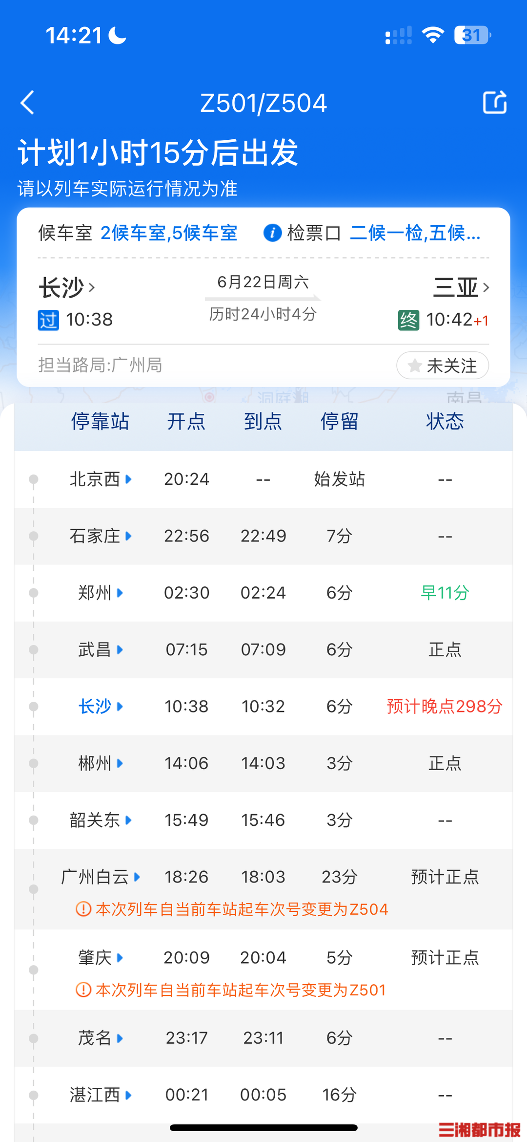 2024防汛火线|接近5小时!途经长沙的多趟列车严重晚点