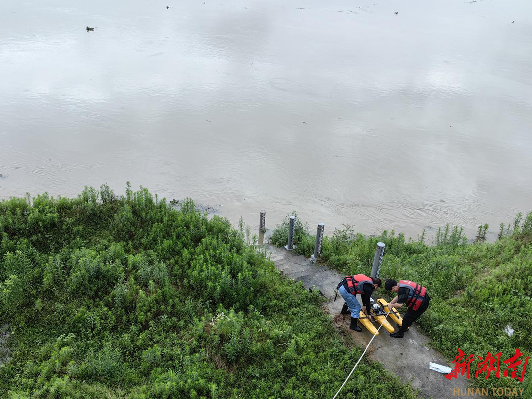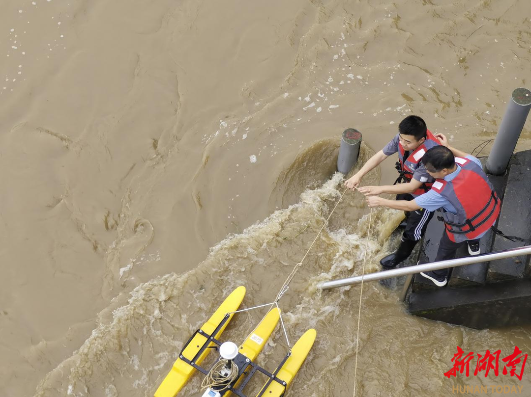 (22日,岳阳水文中心职工在新墙水文站开展水文应急监测)
