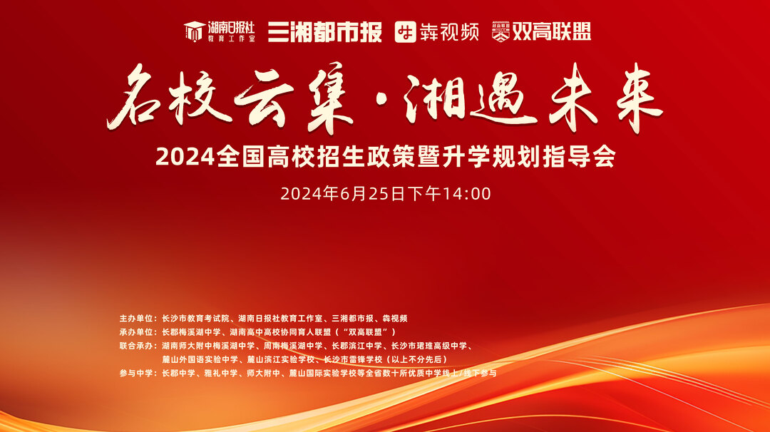 此外,为了更好地服务考生与家长,部分高校招生相关负责人还将走进直播间,针对家长普遍关心,如:各学校的招生计划、录取规则、培养模式、学费及住宿费标准等热点问题为大家进行线上“一对一”解答,切实解决考生和家长在志愿填报过程中可能遇到的难题。6月25日14时30分,湖南日报微博、湖南日报犇视频、新湖南抖音、三湘都市报、犇视频等视频号将同步开启直播,您可选择其中任意一平台观看和讨论。我们不见不散。