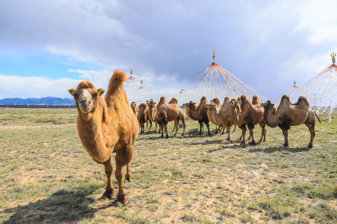 骆驼是阿拉善的“名片”,亦是当地牧民生活中不可或缺的伙伴。阿拉善的牧民们不论男女老少,都拥有高超的骑驼技术。每逢婚宴、敖包盛会、寺庙经会等盛大活动,牧民们会驱驼疾驰,场面非常壮观。
