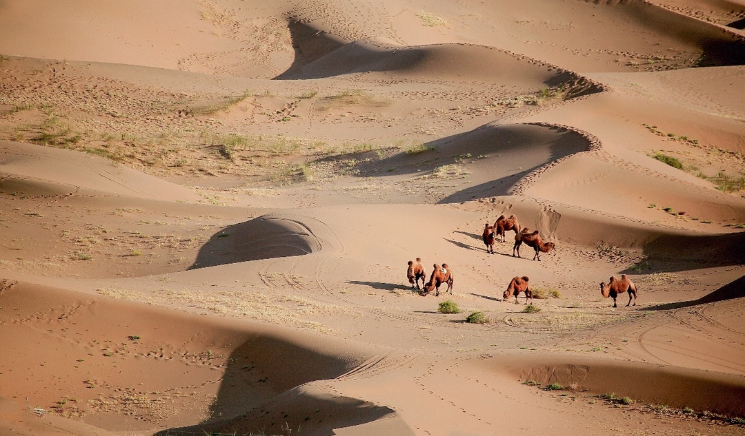 阿拉善双峰驼以独特的品种和优良的品质闻名于世,被誉为“沙漠之舟”。资料表明,它拉车载重可达1吨;驮运175公斤,日行程可达35公里;单人骑乘,可日行50余公里。骆驼在8级大风和-20~30℃的条件下,仍能照常前行;10天左右滴水不进,仍可负重前行。因此,骆驼是中国古代通往西域的“丝绸之路”上的重要交通工具。我们的祖先,凭几峰骆驼,就在沙漠中把这条南路勘探出来,献给后人,这是一件多么了不起的事情!