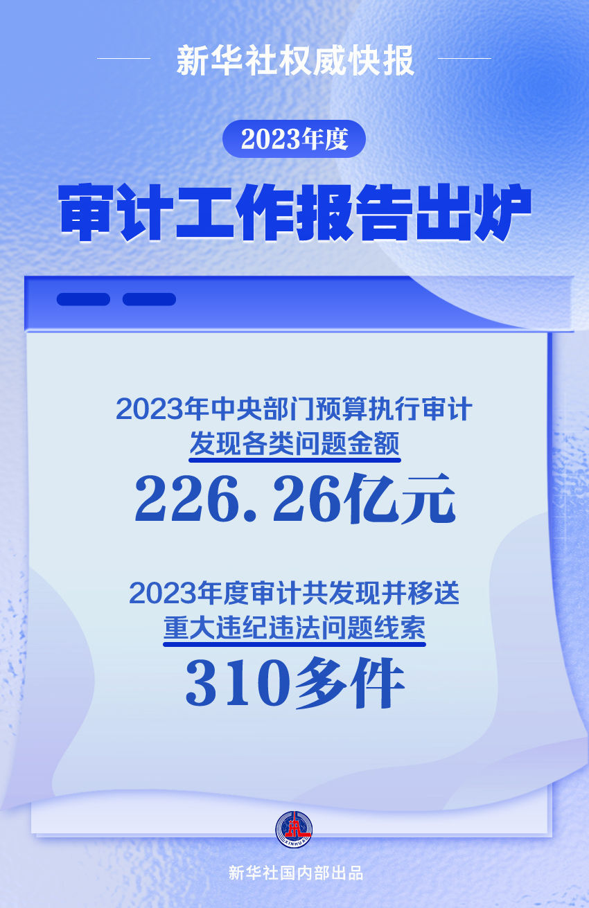 审计被称作“经济体检”,是党和国家监督体系的重要组成部分。受国务院委托,审计署审计长侯凯6月25日上午向十四届全国人大常委会第十次会议作《国务院关于2023年度中央预算执行和其他财政收支的审计工作报告》。