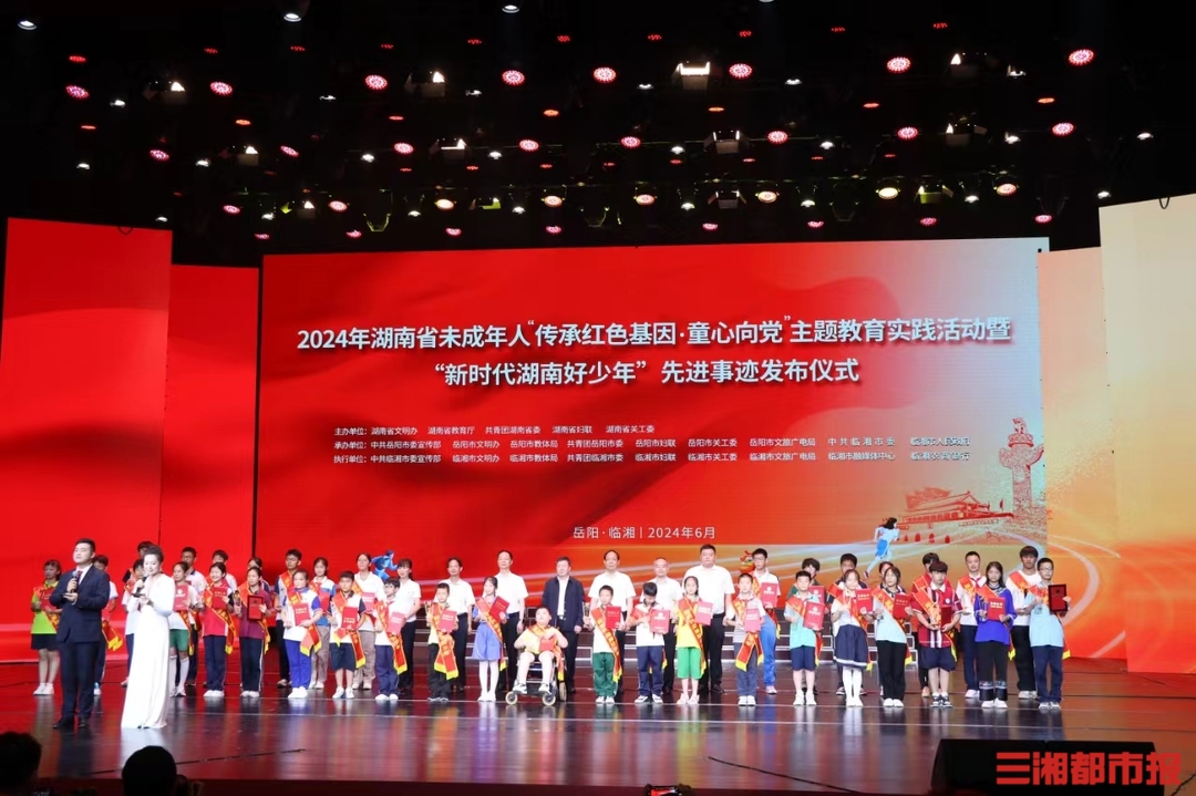 三湘都市报·新湖南客户端6月25日讯(全媒体记者 黄亚苹 通讯员 李晗勋 刘宇丽)昨日,湖南省2024年未成年人“传承红色基因·童心向党”主题教育实践活动暨“新时代湖南好少年”先进事迹发布仪式在岳阳临湘举行。湖南省委宣传部副部长、省文明办主任赵成新,岳阳市委常委、宣传部部长刘启峰出席。