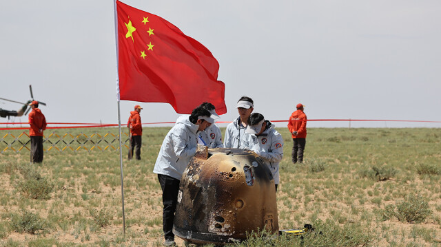 6月25日拍摄的嫦娥六号返回器回收现场。新华社 图