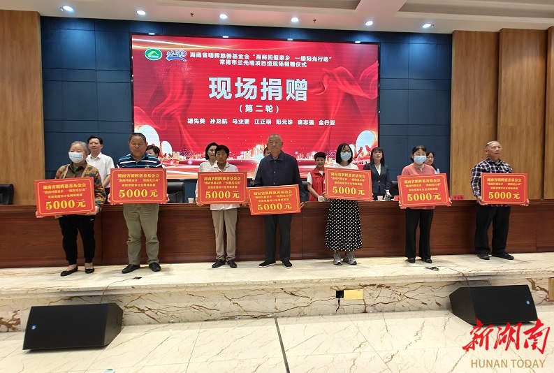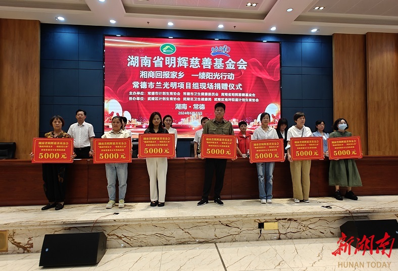 6月27日,常德市计生协、市卫健委、湖南省明辉慈善基金会在武陵区全民健身中心联合举办“湘商回报家乡 一缕阳光行动”常德市兰光明项目组现场捐赠仪式,14位计生特殊对象代表现场接受捐赠。