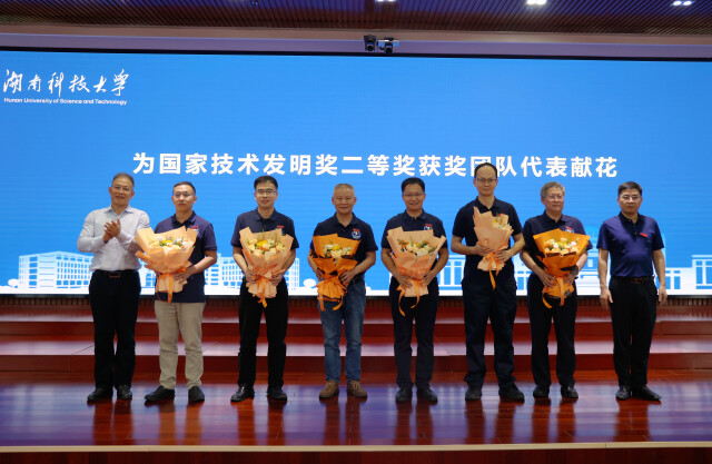 湖南日报6月27日讯(全媒体记者 余蓉 通讯员 唐亚慧 王可心)掌声热烈,鲜花簇拥……6月26日,湖南科技大学召开学习贯彻全国科技大会、国家科学技术奖励大会、两院院士大会精神会议,热烈祝贺湖南科技大学万步炎教授团队研发的“‘海牛’系列深海海底钻机系统与取芯技术”被授予国家技术发明奖二等奖。该校党委书记唐亚阳、校长蒋丽忠代表全体师生为“海牛”团队送上鲜花,向投身建设科技强国的伟大事业的他们致以崇高敬意。