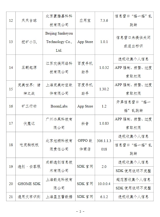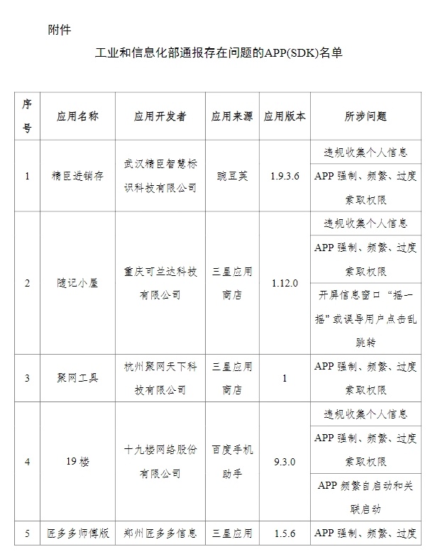 附件:工业和信息化部通报存在问题的APP(SDK)名单