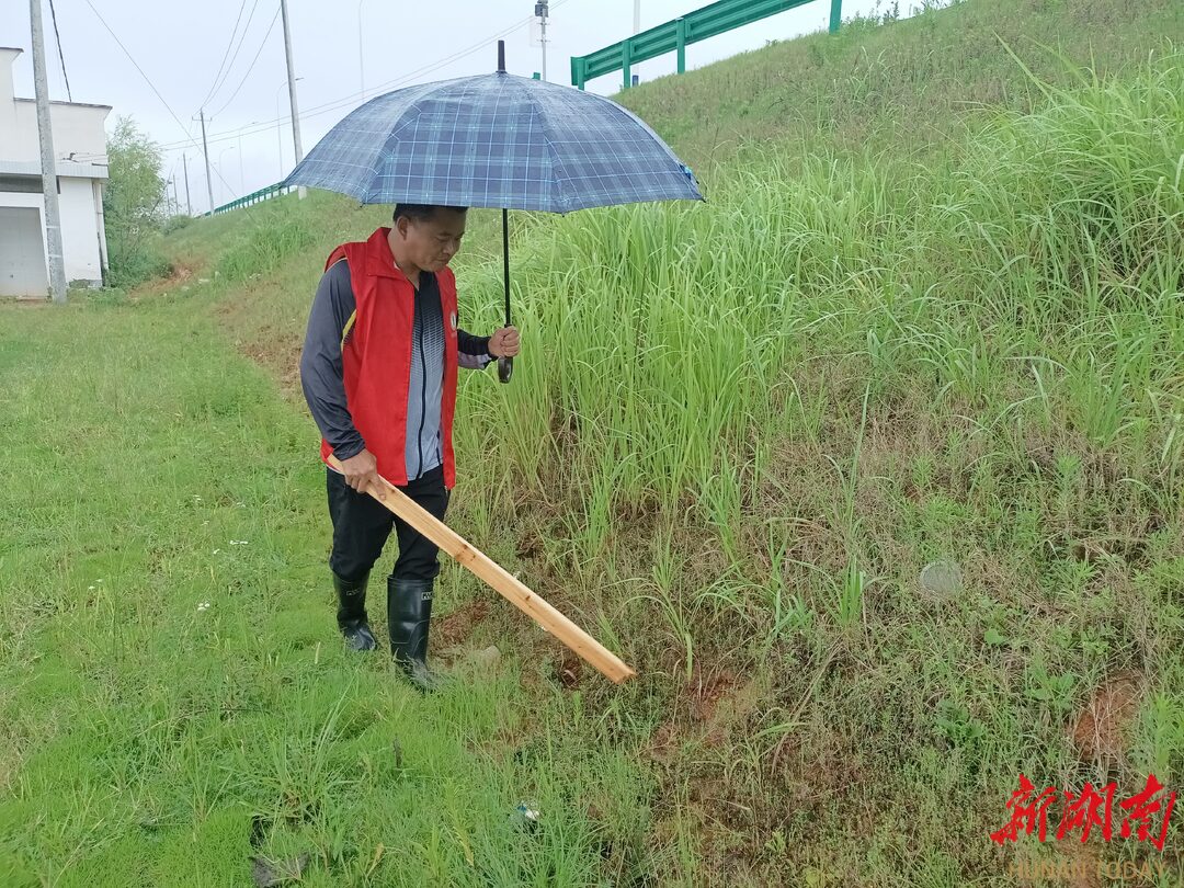 在接到党总支召集志愿者上堤巡防值守的通知后,石毫村党员严建国积极响应:“我随时可以上!”安排好手中的工作,他穿上套鞋、拿起雨伞赶到靖乔防汛责任堤段进行安全巡查。“我经验丰富,知道怎么排查隐患,每次的防汛我都参加”,在村工作人员告知严建国巡堤注意事项时,严建国自信说道。他一边巡堤,一边报名下一个值守班次,同时也在党员微信群里动员更多党员投身抗洪一线,用实际行动保卫家园。