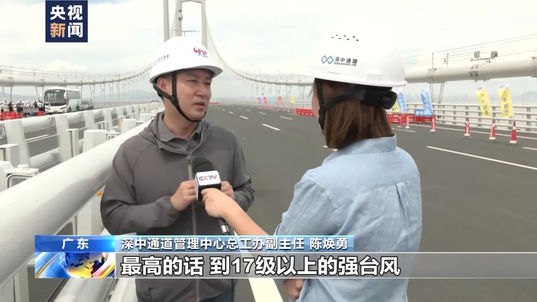 深中通道管理中心总工办副主任 陈焕勇:颤振临界的风速提高到世界最高的88米每秒,最高到17级以上的强台风,这个桥应该是没问题的,是安全的。