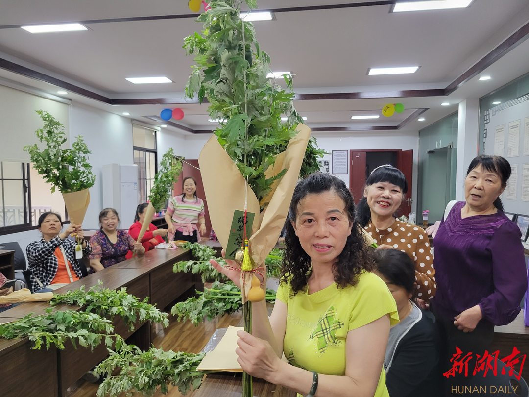 新湖南客户端6月5日讯(通讯员 胡雅文)“端午时节草萋萋,野艾茸茸淡着衣。”又是一年端午时,民谚说:“清明插柳,端午插艾。”挂艾叶、佩香囊是民间庆祝端午佳节的一项重要文化习俗。为此通泰街道连升街社区以端午节这个传统节日为契机,4日在社区二楼深入开展以“夏色倚青艾 邻里庆端阳”为主题的群众性迎端午活动。