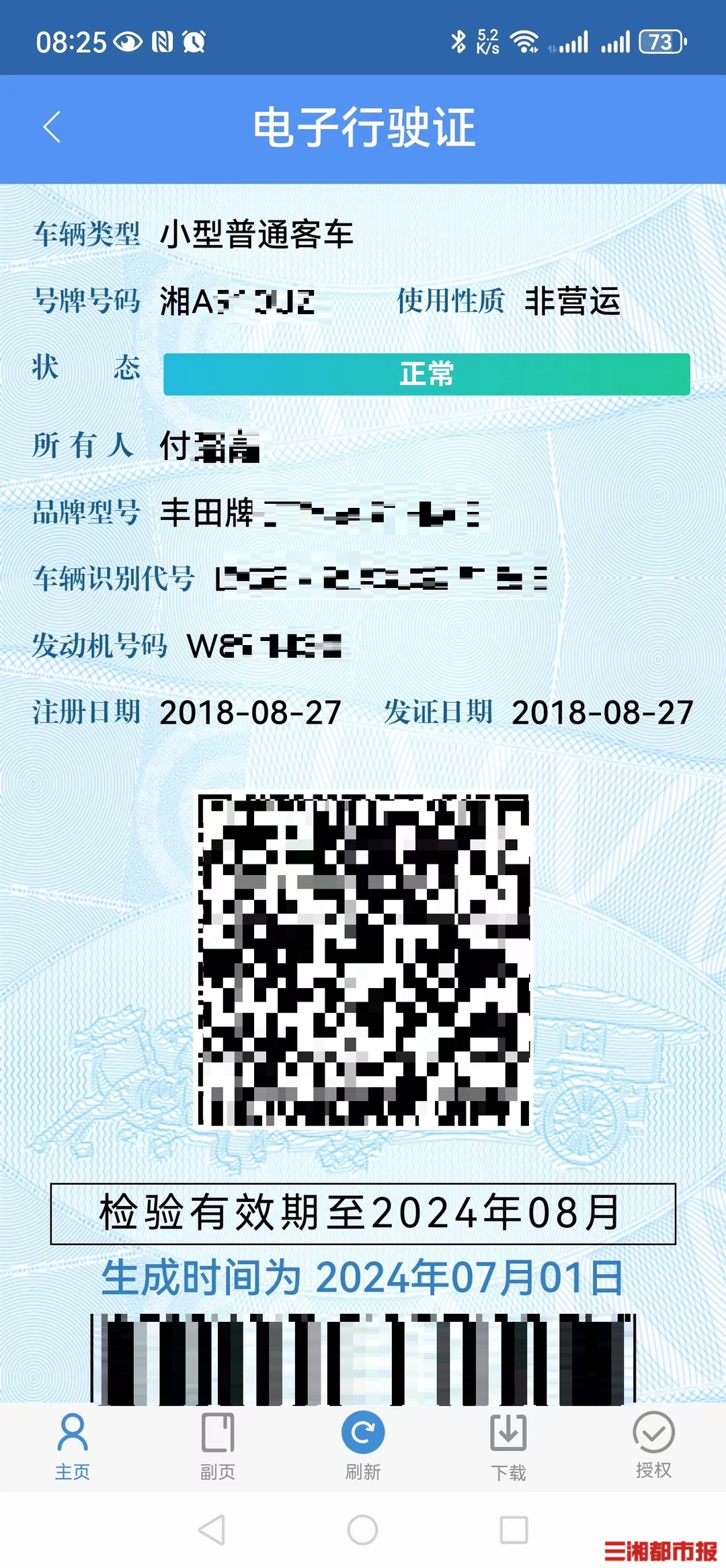 三湘都市报·新湖南客户端7月1日讯(全媒体记者 虢灿)“不到1分钟操作完,等几分钟,两台车电子行驶证都显示了。”7月1日上午,长沙市民付先生告诉三湘都市报记者。今日开始,长沙、株洲两地车主可通过“交管12123”APP申领电子行驶证,违法及事故处理、车辆登记可直接手机“亮码”办理。
