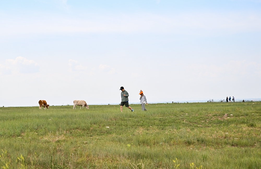游客在敕勒川草原游玩。新华社记者 贝赫 摄