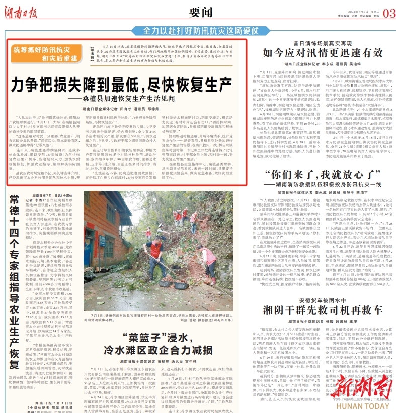 6月16日以来,我省遭遇持续强降雨天气,造成多地不同程度受灾。连日来,全省各级党委、政府压实防汛抗灾主体责任,部门间地域间加强协调联动,不怕疲劳、连续作战。即日起,湖南日报开设“统筹抓好防汛抗灾和灾后重建”专栏,报道全省各地安全有序抓好防汛抗灾、复工复产和灾后重建的有力行动与积极成效。