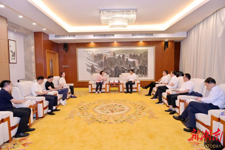 6月27日,湖南财政经济学院党委书记杨兰英、党委副书记苏玲一行在张家界市拜会了张家界市委副书记、市长王洪斌,双方就文旅规划、品牌营销、科学研究等合作事项进行了友好洽谈。张家界市委常委、市委秘书长贺建壬,张家界副市长汪涛、市政府秘书长向志刚及市委办、文化旅游广电体育局、教育局等单位领导参加会见。