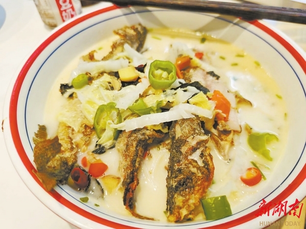 夹起最上层的鱼,外皮金黄焦香、汤汁馥郁。咬下小块,外皮鲜辣有嚼劲,鱼肉入口即化。“每一份鱼肉码子,都是本地塘鱼,肉嫩新鲜。”彭海军告诉记者,他们还采取活鱼现杀、小锅份煮的方式,确保鱼肉的鲜美。