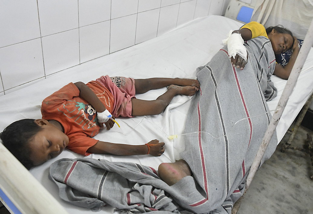 当地时间2024年7月3日,印度北方邦哈特勒斯,踩踏事故中的伤者在医院接受治疗。