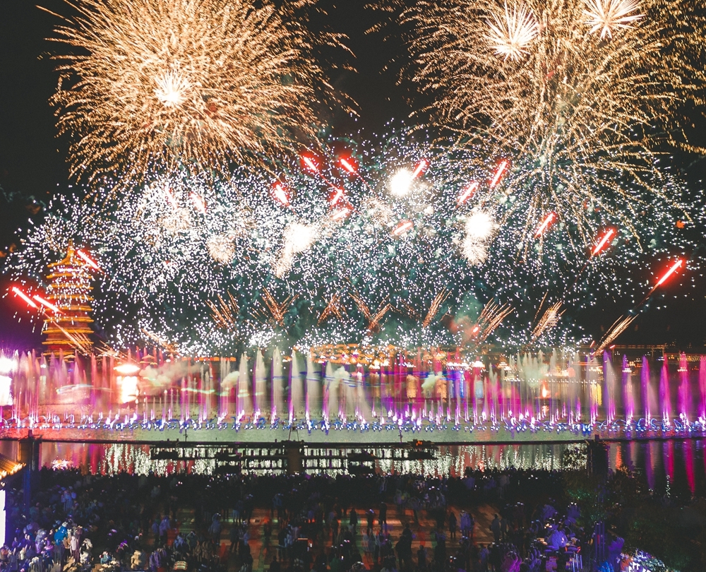 夜场期间,打造“星光歌会”演出场景,邀请专业歌手驻场演出,更有夜场王牌项目沉浸式演艺“无梦到铜官”、非遗表演打铁花、水上烟花秀,让夜空美丽而热闹。