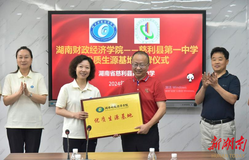 苏玲(前排左)与慈利县第一中学签订优质生源基地共建协议
