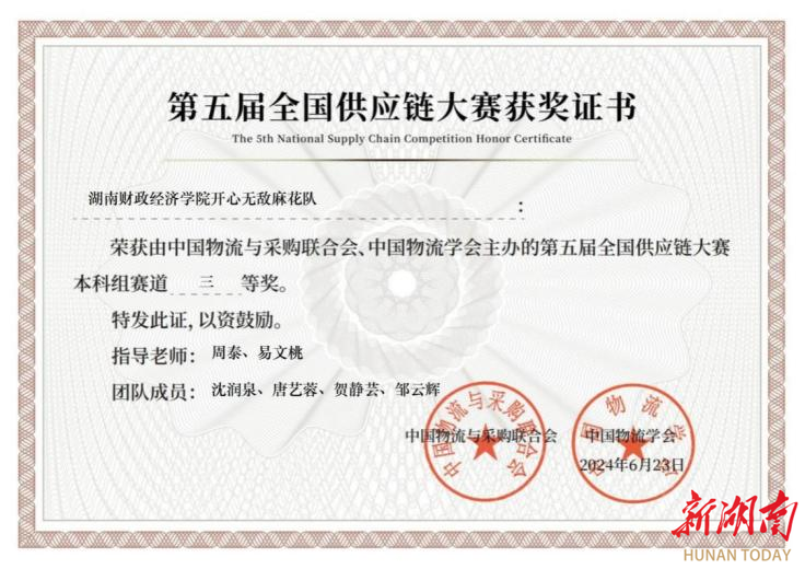日前,第五届全国供应链大赛决赛举行,湖南财政经济学院代表队获得本科组和教师组三等奖。