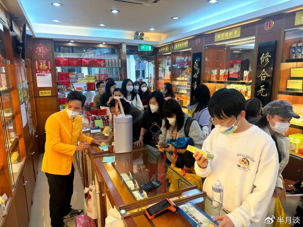 顾客在澳门的药店内争相选购中成药