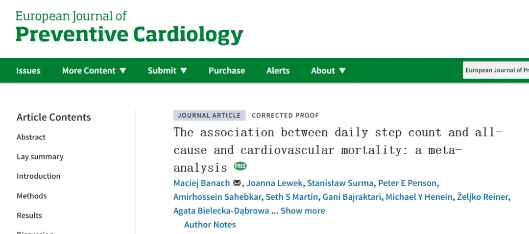2023 年,一项发表在欧洲心脏病学会旗下期刊《欧洲预防心脏病学杂志》的研究显示:多走路对长寿有好处,日常走路少的人或难长寿。