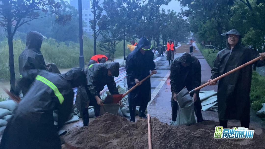 由于友谊河堤坝最低处水面距离路面仅30厘米,持续降雨可能倒灌至低洼居民区,党员们分不清脸上是汗水还是雨水,个个争分夺秒,埋头苦干。