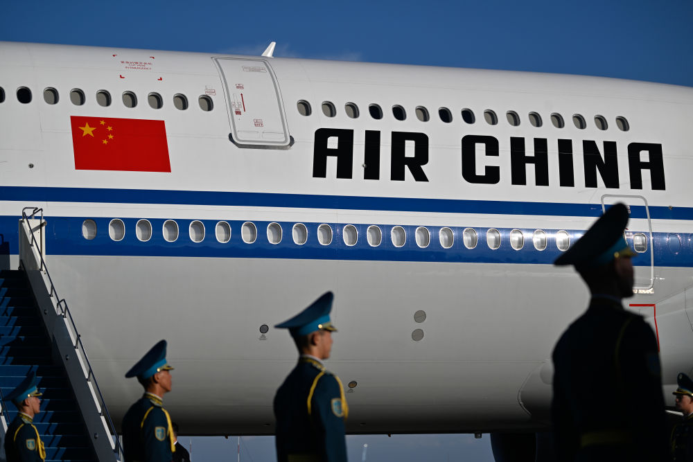 习近平专机起飞后,哈萨克斯坦三架空军战机升空护航。