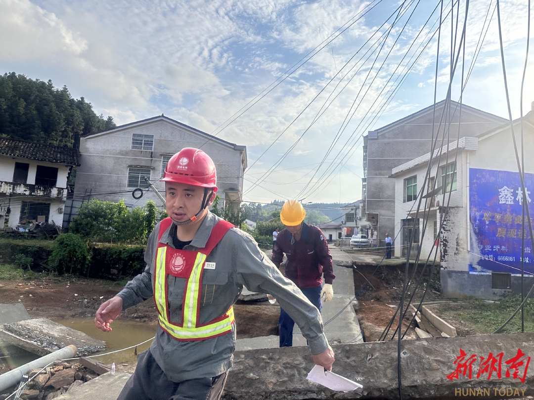 翻山越岭也要去送电!平江三阳乡金塘村,受山洪袭击,电力设施受损严重。7月2日一早,国网平江供电公司安监部主任张强就组织人员进山。由于道路塌方,10多名电力工人从隔壁后山弯了18公里山路才来到村里,随即马不停蹄开始紧张的抢修作业。从早上8时一直忙到下午,沿线113根电杆完成逐一排查。