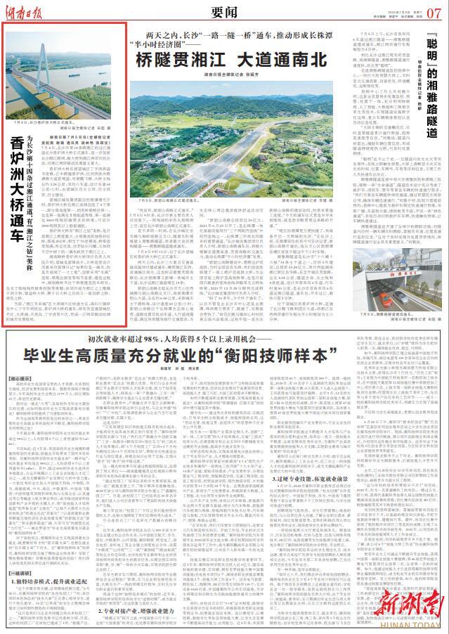 湖南日报7月5日讯(全媒体记者 孟姣燕 谢璐 范远志 通讯员 段林艳 张琪汶)7月4日,长沙市第14条跨湘江的过江通道长沙香炉洲大桥正式通车,进一步加密长沙跨江路网,极大便利湘江两岸市民往返,对湘江两岸联动发展意义重大。
