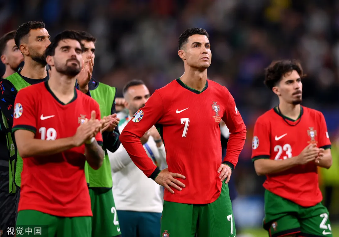 再看本届杯赛中年纪最大、欧洲杯出勤率最高的两位功勋。当39岁的C罗和41岁的佩佩抱头痛哭,又互相轻拍后背,这一幕让所有人动容。想当年意气奋发,系马高楼,如今却泪洒战袍,互相抚慰。