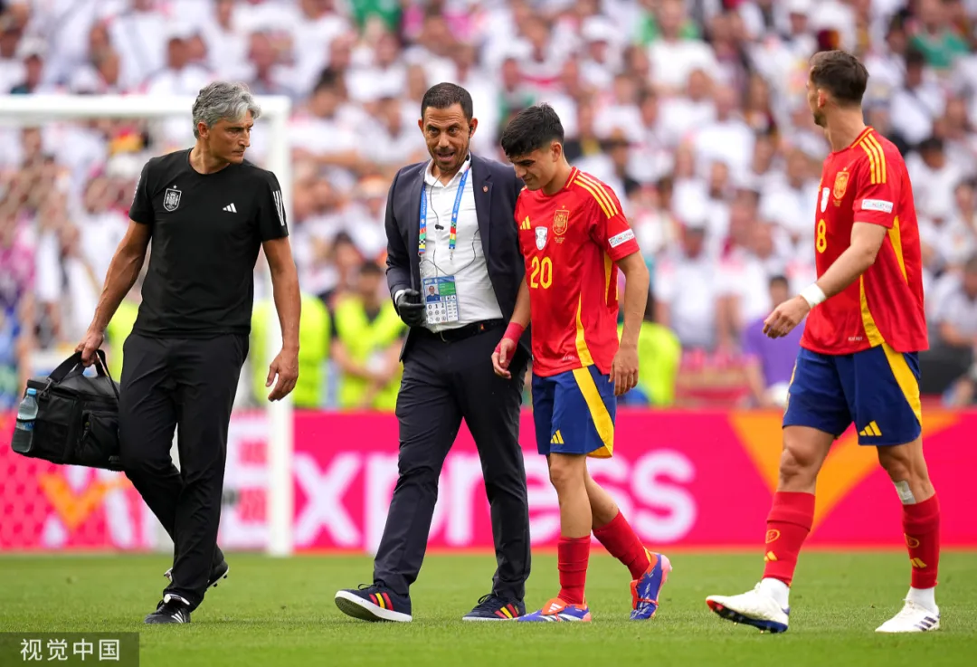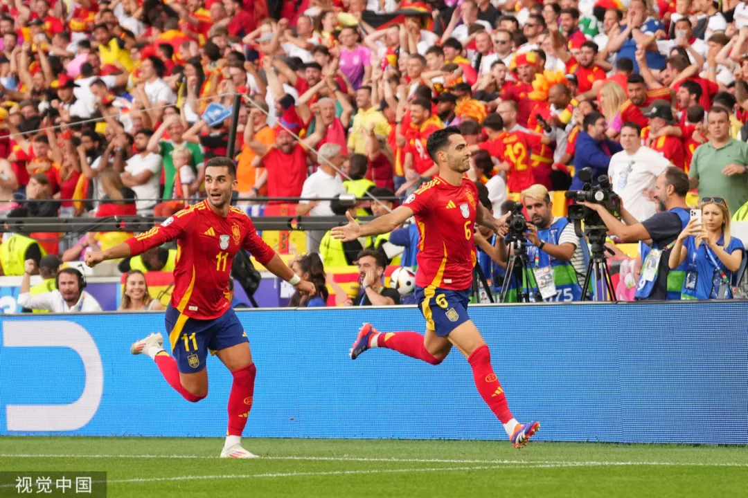 德国队在常规时间的最后一分钟扳平比分,加时赛即将结束,当人们以为两队将点球决斗时,西班牙人进球了,德国战车轰鸣的战斗声却戛然而止。两队120分钟的鏖战,不可谓不惨烈:两队坚持明确而清晰的身体对抗和砍伐战术,全场共计犯规39次,黄牌16张,创下本届最高纪录;全部由替补球员完成的进球,也说明这场比赛空前的艰苦和焦灼。