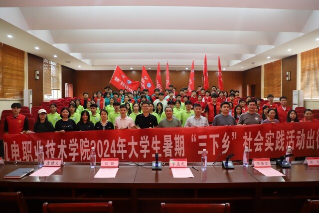 副校长李盖虎为出征队伍授旗,并正式宣布湖南机电职业技术学院2024年大学生暑期“三下乡”社会实践活动正式启动。他强调,“三下乡”是同学们增长见识、锻炼能力、服务社会的宝贵机会,希望大家珍惜这次机会,将所学知识应用到实践中去。