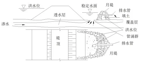 沙基问题是指,地层结构上一层为粘性土,一般小于2米,其下为透水性较强的粉细砂、中细砂、砂砾石层。当外河外湖水位过高,水将通过沙基向堤面内部渗透,主要有分散性渗漏和集中渗漏两种形式。洪水期集中渗漏较普遍,初期以流土为主,最终形成管涌,管涌将带走沿途土质颗粒,当空洞到一定程度后,可能造成堤防塌陷,进而发生溃垸险情。