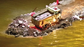此外,邓先生还介绍,7月6日,他开始从岳阳市云溪区往决口运送石块,一天一趟,目前采石块的位置也有卡车排队现象,都是往决口运送。“昨天早上5点到这里,到下午5点才到决口把石块卸下,今天凌晨在采石那里排了两个小时队,到这边排了一个小时队就进来了。”记者武华康