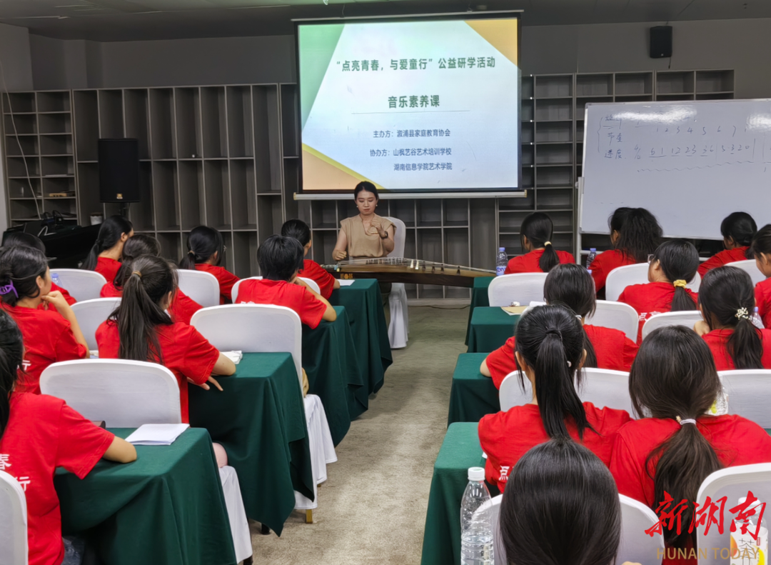湖南日报·新湖南客户端7月8日讯(通讯员 肖乐之)7月7日,“点亮青春 与爱童行”公益研学活动音乐素养课在山枫艺谷艺术培训学校开讲,来自怀化溆浦县乡村的30名家庭困难孩子听得津津有味。