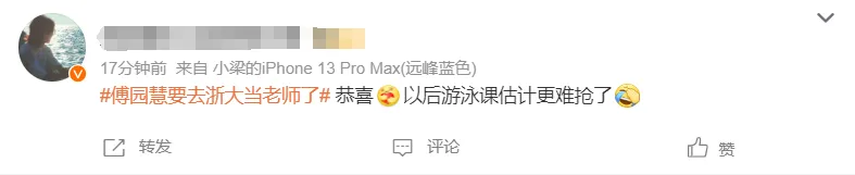 2020年,傅园慧和跳水运动员曹缘等39人获得保研资格,加入北京体育大学研究生冠军班。