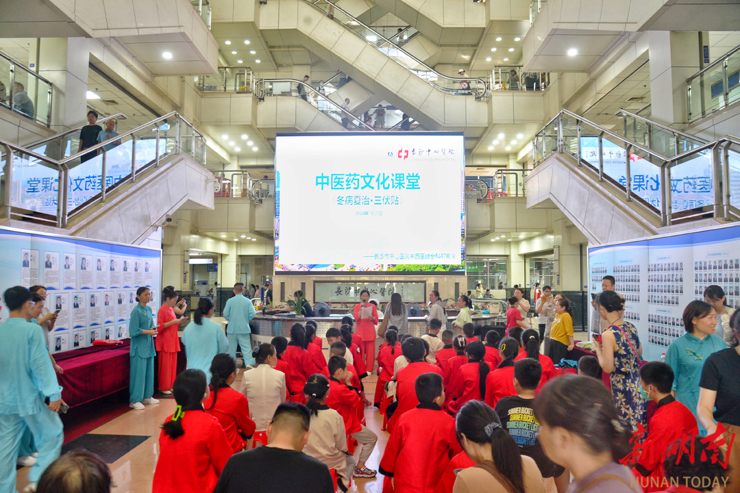 7月10日上午,长沙市中心医院(南华大学附属长沙中心医院)“中小学生中医药文化课堂”暑期公益课开启。40名7岁至14岁的“中医小学员”齐聚一堂,作“三伏贴”、品鉴药饮、寻找“穴位”,以孩子感兴趣的方式,将中医理念及文化传承下去。
