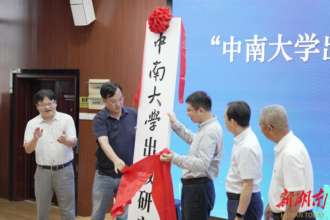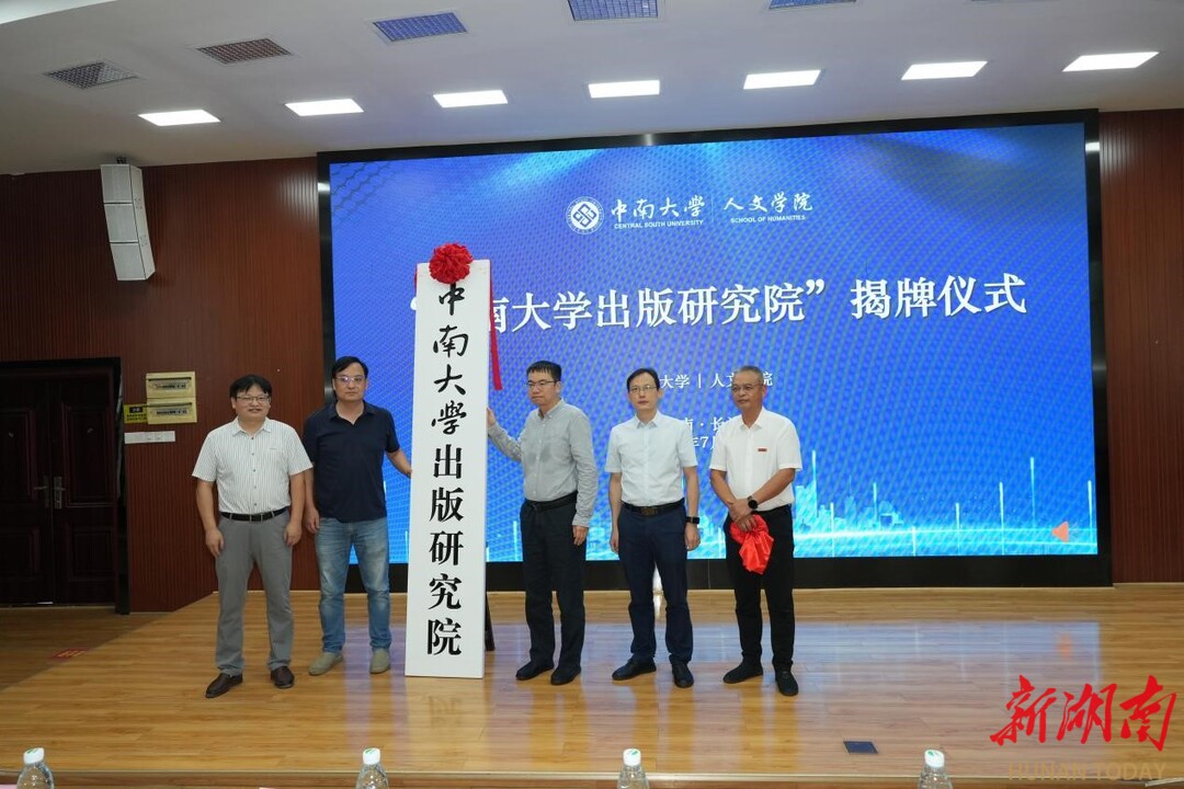 7月11日上午,中南大学出版研究院揭牌仪式在中南大学人文学院学术报告厅举行。中南大学副校长何军、中南大学人文社科处处长毛俊响、中南出版传媒集团产业研究院常务副院长刘剑、中南大学人文学院党委书记罗军飞、中南大学人文学院院长范明献共同为中南大学出版研究院揭牌,标志着中南大学在出版学科专业建设上迈出了重要一步。