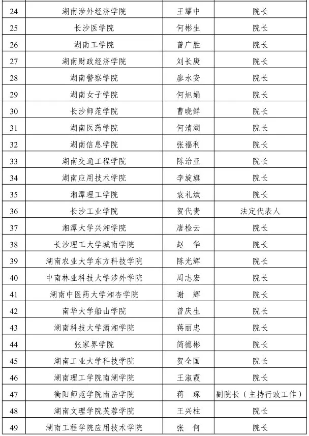 根据教育部有关规定,为继续实行校长签发录取通知书制度,落实高校招生主体责任,现将2024年我省省属高校录取通知书签发人名单予以公布(共135所)。我省省属高校发放的通知书除加盖学校校章(或学校招生录取专用章)外,还应有校(院)长或授权签发人的签名信息。我省2024年普通高校招生录取工作正在进行,被录取考生将陆续收到有关高校寄出的录取通知书。请广大考生及时查看本人录取情况,相关疑问及时与录取高校联系。在收到高校录取通知书后仔细加以甄别,在对照学校印章和签发人信息的同时,还可以通过湖南招生考试信息港(http://www.hneeb.cn/)核实录取信息。