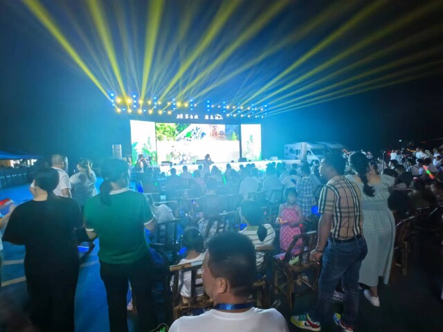(7月11日晚,有客人在青羊湖国有林场研学中心观看文艺节目。 彭雅惠 摄)