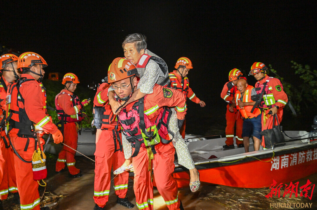 水急浪高,湖南干部群众同舟共济,累计调度各类救援人员3000余人,出动200余艘冲锋舟,解放军、武警、消防、应急、水利等多部门闻令而动,汇聚成大转移的坚强力量。