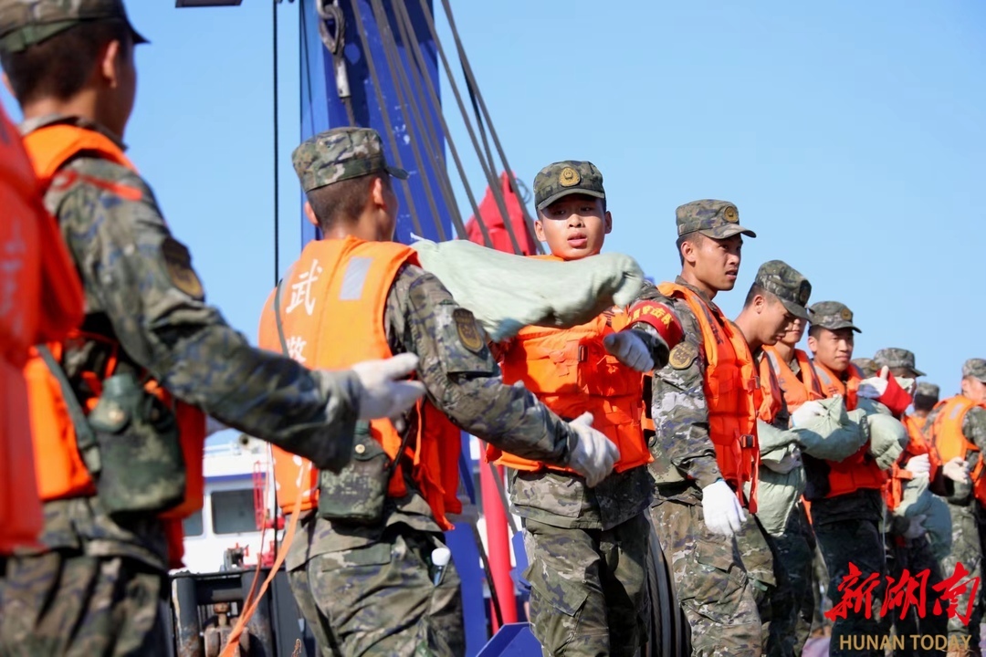他身后不远处,武警湖南总队长沙支队战士、党员高家爽被晒得满脸通红。当天11时,这名24岁的战士随队伍抵达现场,迅速投入抢险:“能多搬一个沙袋是一袋!”