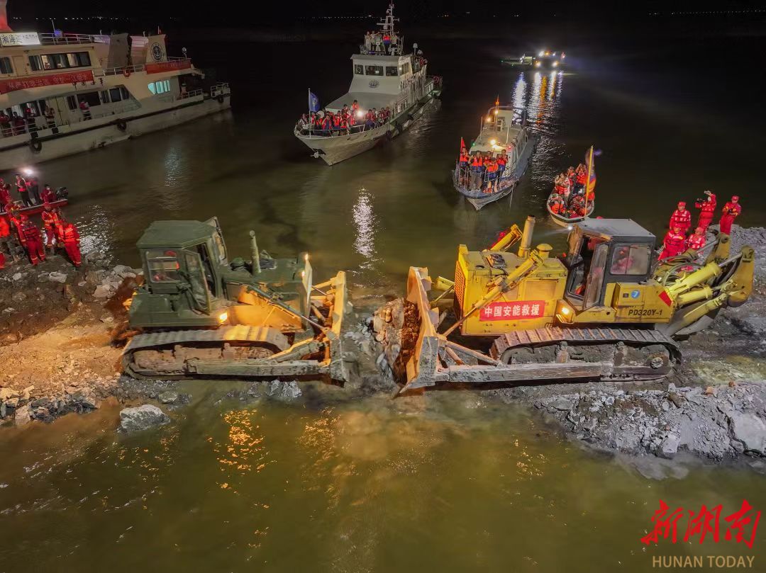 7月5日20时,国家防总赴湘工作组、应急管理部、水利部专家及中国安能集团救援队,迅速赶赴现场,连夜研究制定决口封堵方案。
